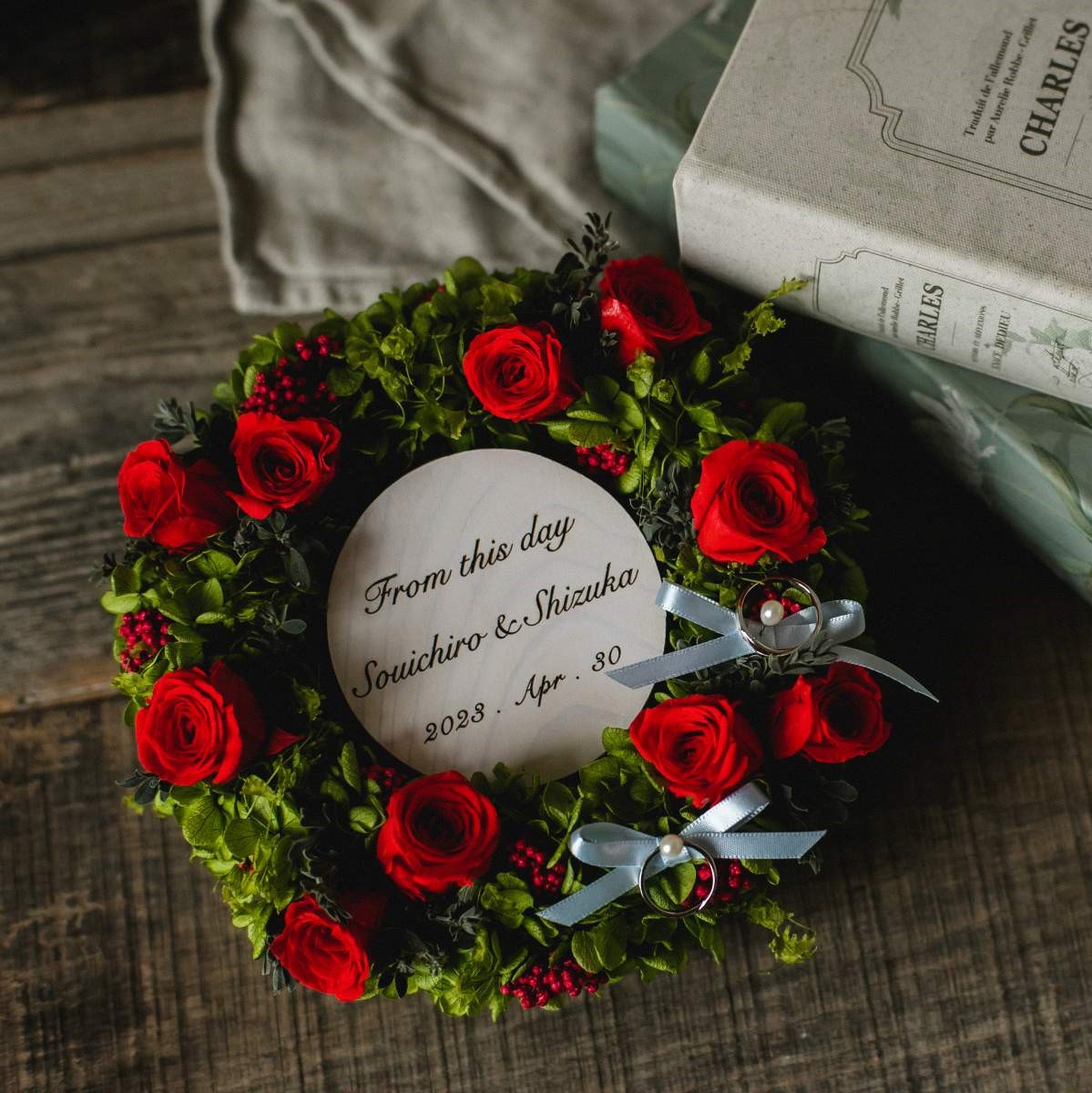 メッセージ・お二人のお名前、ご成婚月日を刻印いたします。